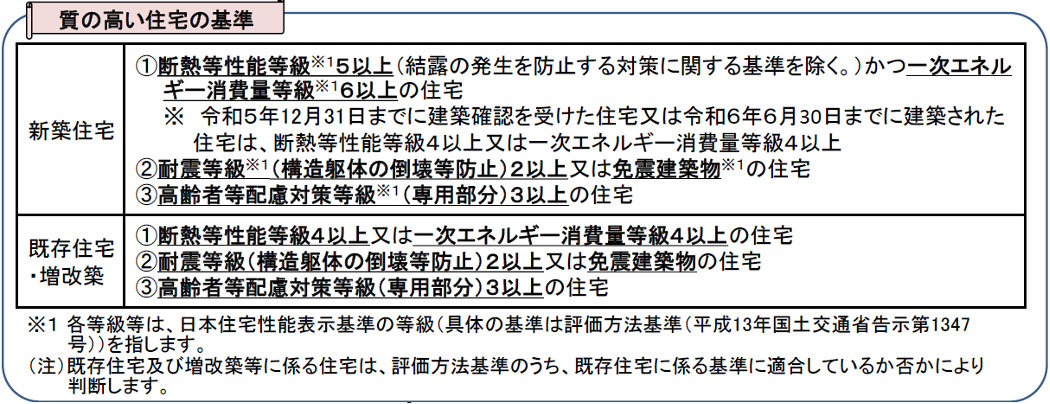 特例の非課税限度額を1000万円にするためには、「質の高い住宅」として一定の性能基準を満たす必要があります。