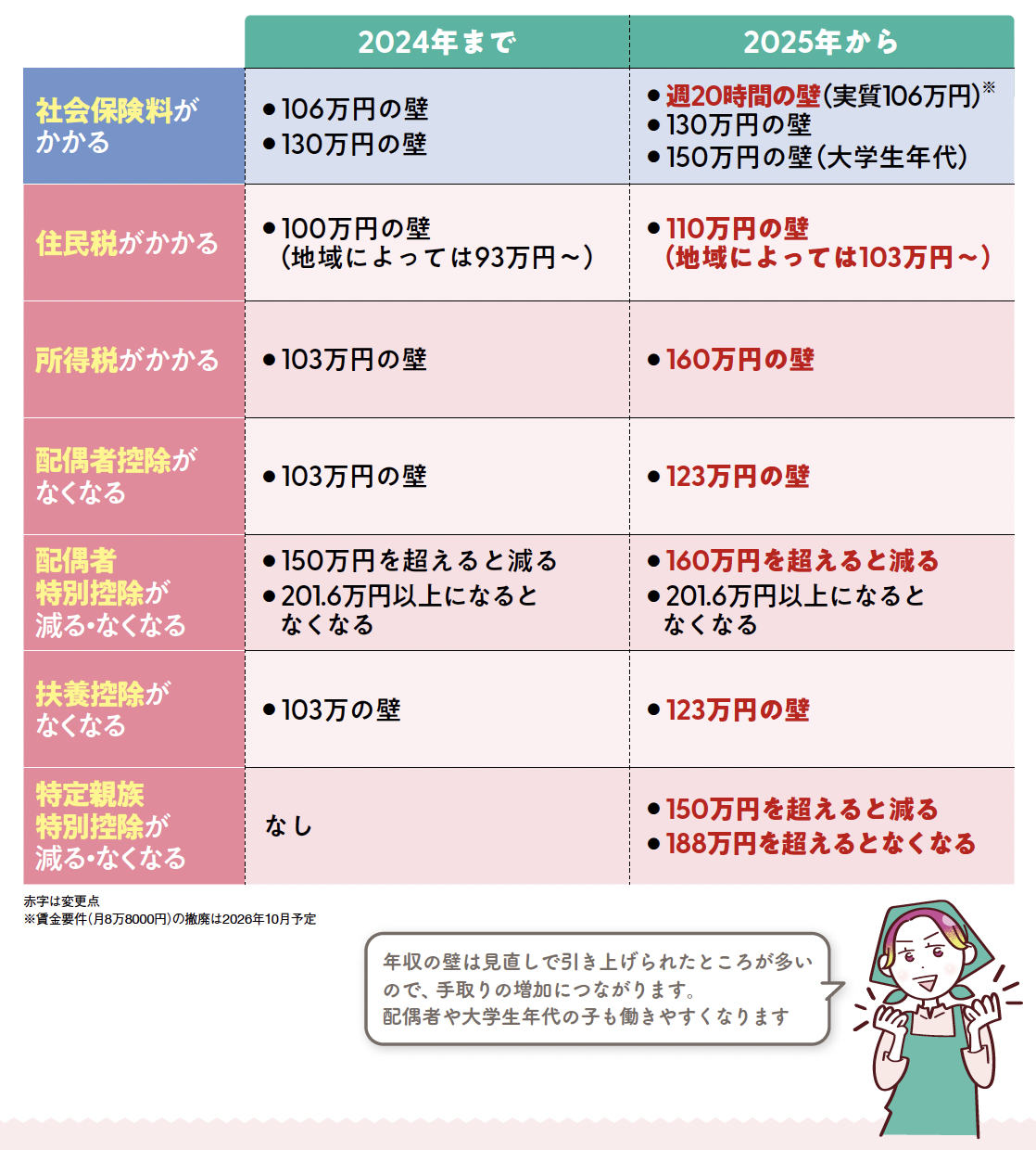 2025年、年収の壁は大きく動きました。2024年からの主な変更点を確認しておきましょう。