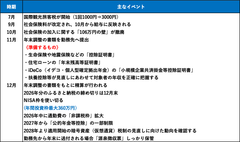 下半期(7月~12月)のお金のイベントを一覧表で確認