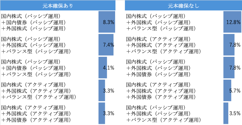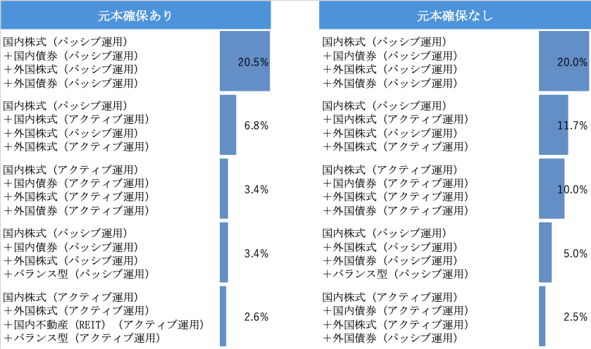 グラフの掲載は割愛しましたが、投信を5種類選ぶ「元本確保なし派」では、REITが上位に登場し、分散を一層進めている人も見られます。一方で、「バランス型+主要4資産」も上位に来るため、ここは重複投資(実質的な上乗せ)が起きやすいポイントです。