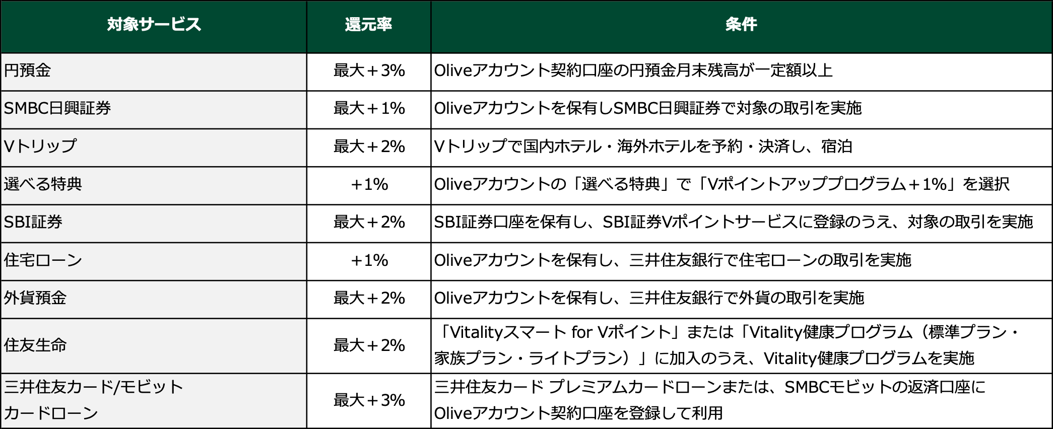 Vポイントアッププログラムのポイント還元率アップ条件(2026年3月時点)
