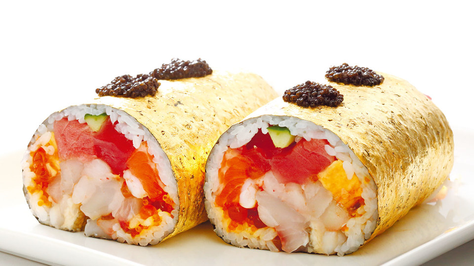 見るからに豪華絢爛。金箔を張り付けた海苔で巻き上げた恵方巻き(冒頭写真)を売り出すのは、大丸東京店です。