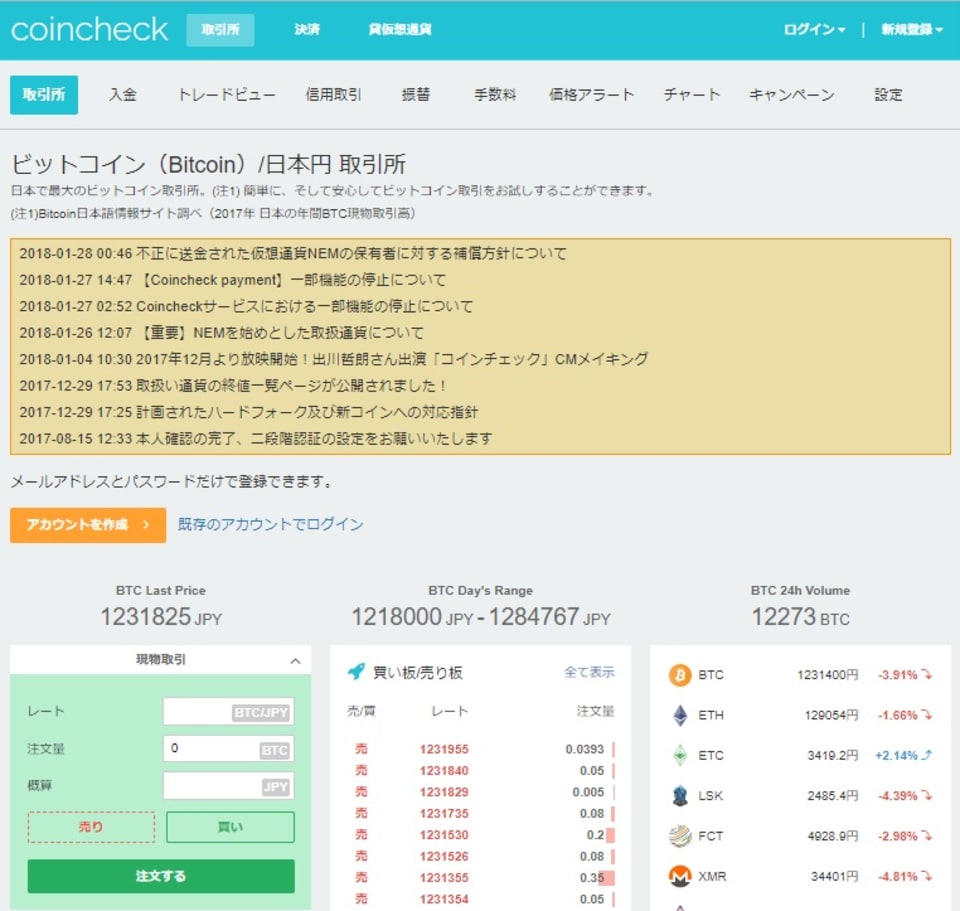 コインチェックは1月29日現在も一部機能を停止中
