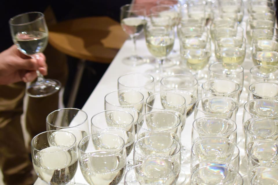 ここで、お待ちかねのテイスティングの時間がやってきました。ワイングラスに入れた3種類の日本酒の飲み比べです。