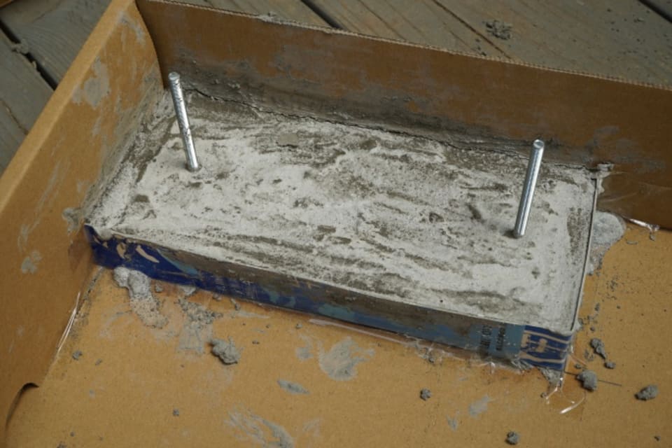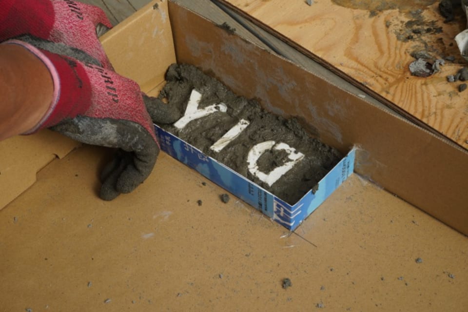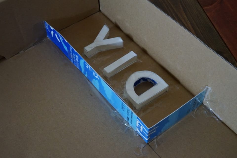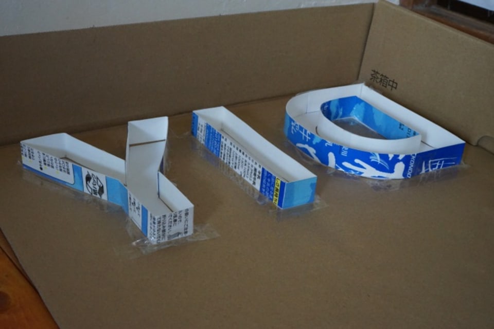 続いてモルタル製の立体文字を作ってみましょう。段ボールや厚紙(ここでは牛乳パックを使用)で、型を作ります。
