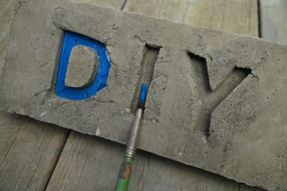 モルタルにはコンクリート用塗料や多用途塗料で着色できますので、塗装を楽しむのもアリです。サインボードを型からはずし、窪み部分を塗装してみました。