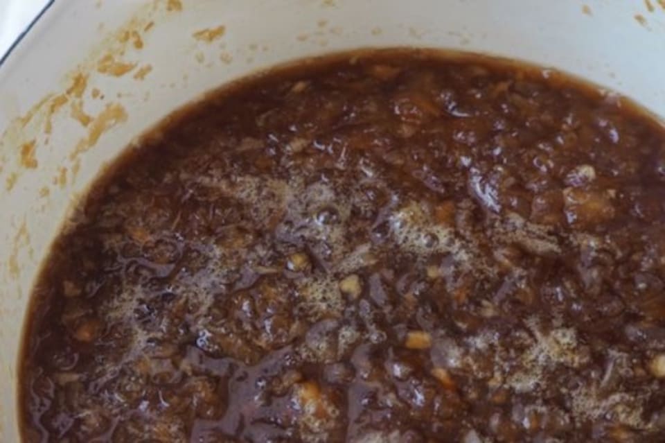 2.鍋に1の材料を入れ、酢以外の調味料を入れ、わいてから5分ほどふきこぼれないように火にかける