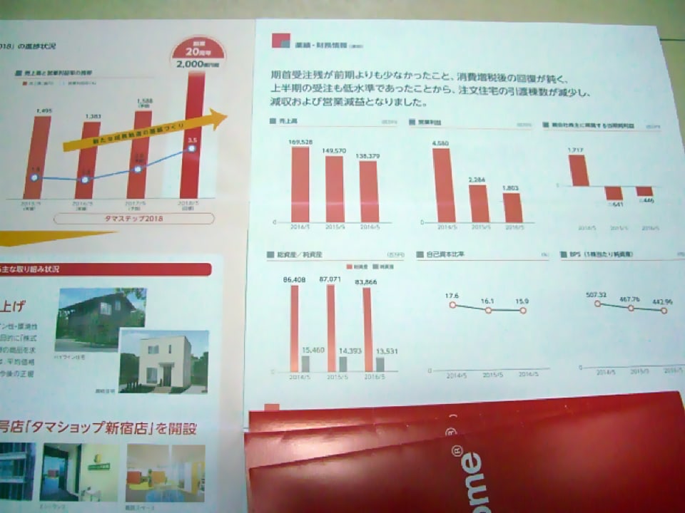 家は確かに高価なだけに簡単に売れるものではなく、赤字もタマホームは経験しています。ですが、2018年5月期を最終年度とする中期経営計画「タマステップ2018」に向けて頑張っています。