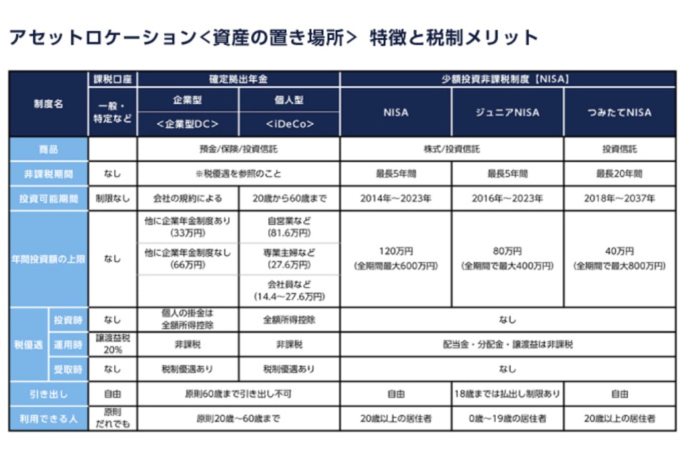 このように、人それぞれ状況は異なりますので、以下に挙げた税制優遇の中から自分のベストロケーションを見つけましょう。