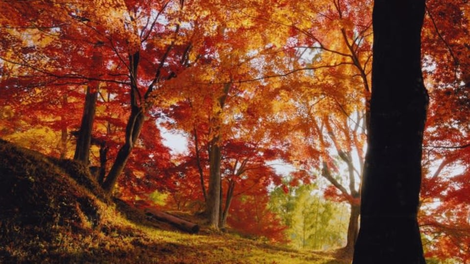 紅葉を楽しむには、園内を東西に横切る千歳川沿いに整備された遊歩道を歩いてみましょう。清らかなせせらぎと苔むした岩、赤いモミジの組み合わせは、山奥の渓谷にも引けを取りません。また足湯施設「独歩の湯」(入湯300円)は、紅葉を愛でながら温泉を楽しめるスポット。9種の湯には、それぞれ湯船底に凹凸があり、足つぼを刺激してくれます。ちなみに施設の名前は湯河原が舞台の作品を残した国木田独歩が由来。見頃は11月中旬~下旬。