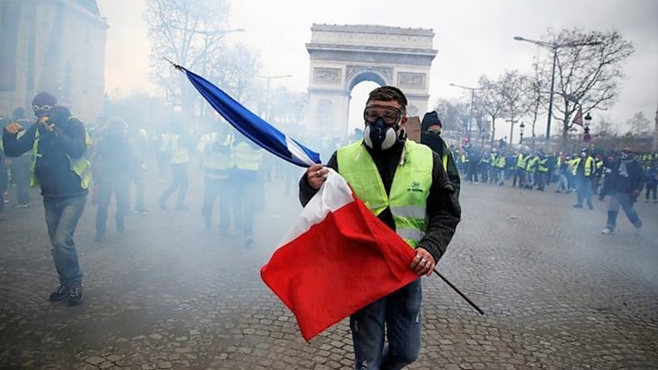 デモは当初、燃料税の引き上げに異を唱えるのが目的で行われていました。しかし、今では「反政権」の色合いを濃くしています。参加した人の多くがデモの象徴とされる「黄色いベスト(ジレ・ジョーヌ)」を身にまとっており、パリでのジレ・ジョーヌと警官の衝突などがフランスのテレビで繰り返し放映されました。