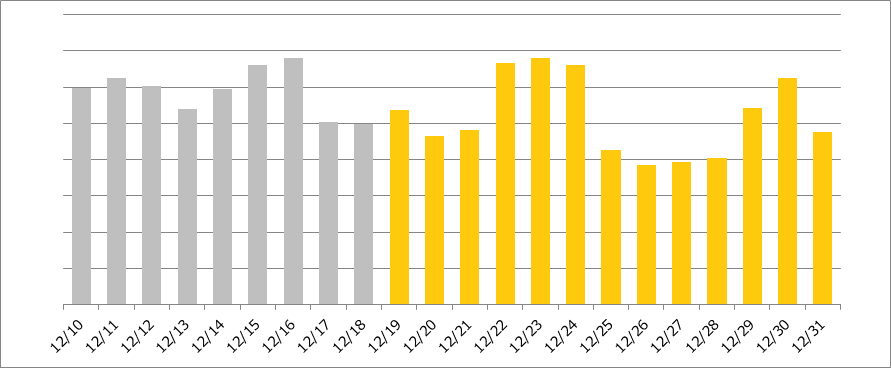 12月中旬~下旬にかけて関東エリア・関西エリアの鉄道車両に交通広告を掲出、年末には新聞各紙に広告を掲載する大型プロモーションを打ち、露出を増やしたことが売上につながっているものと思われます。