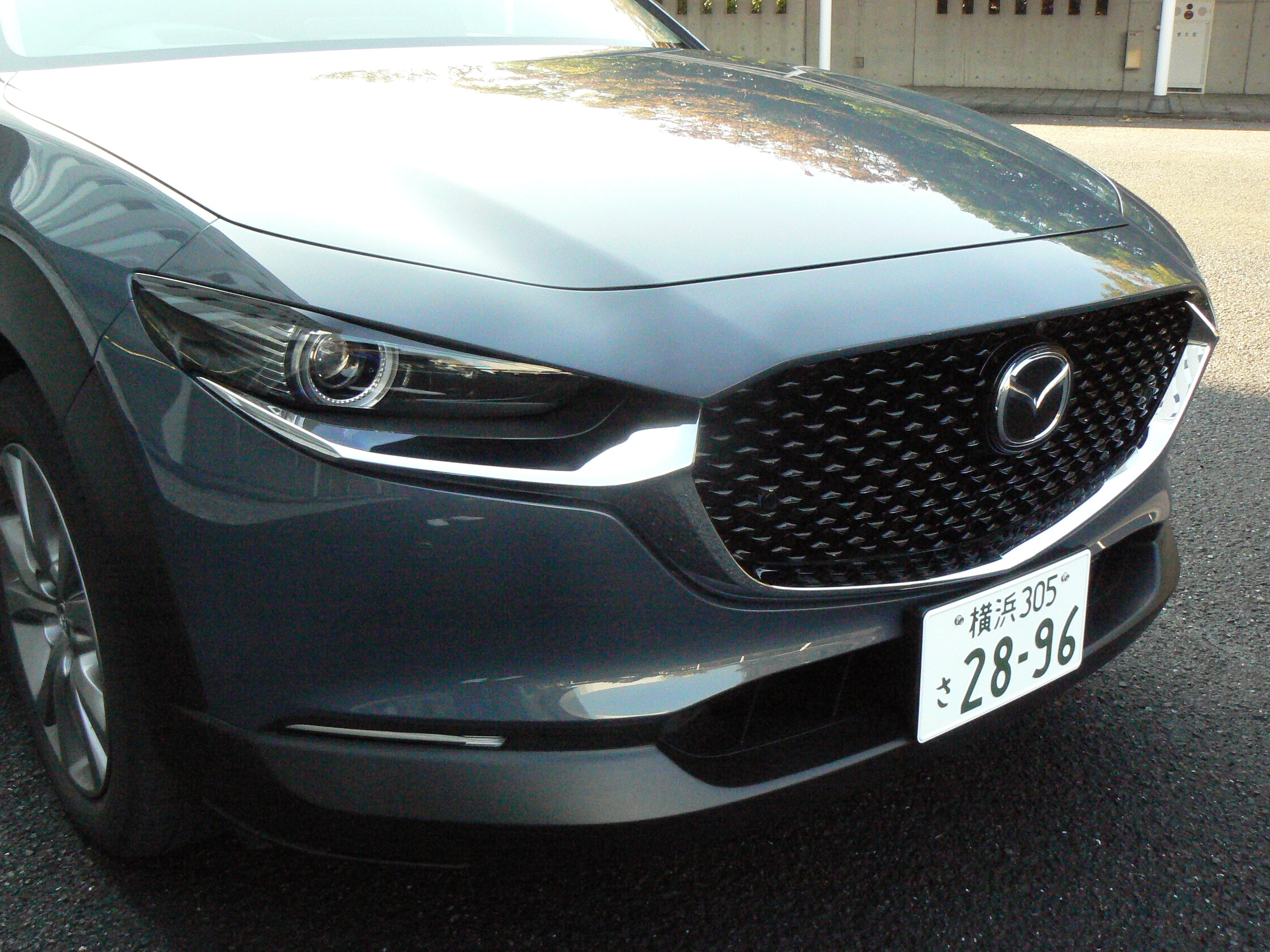 そしてフロント回り。ブラックのキラキラ系パーツで構成したグリルの造形は最近のマツダ車と共通。ひと目でマツダ車と分かるアイデンティティを持っています。おまけに細部を見るとベースとなっているマツダ3とも違っていて、SUVらしい厚みのあるデザインは“カッコ良さ”とすんなり結びきます。