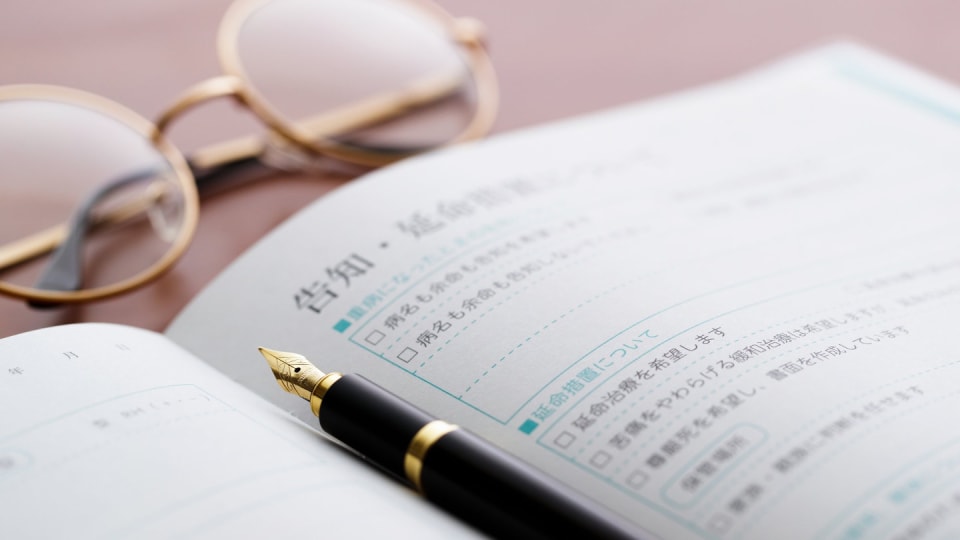 病名や余命の告知をしてほしいのか、してほしくないのか。治る見込みのない病気にかかったときの延命治療についてどうしたいのか。臓器提供に関して、どのように考えているのか。最期を迎える場所(自宅、病院、施設等)の希望はあるのかなど、突然やってくる万が一の場合に備えて自分の希望をしたためましょう。