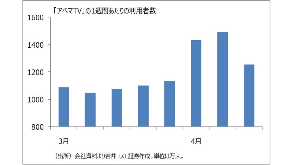 ゲーム以外では、動画配信サービスを利用する消費が増えています。動画配信サービスといえば、日本でもアメリカのネットフリックスやアマゾンの動画配信サービスの利用が増えていますが、日本企業ではサイバーエージェント(4751)が運営するインターネットテレビ「アベマTV」の利用者数が巣ごもりを追い風に増加し、同社の業績を押し上げています。