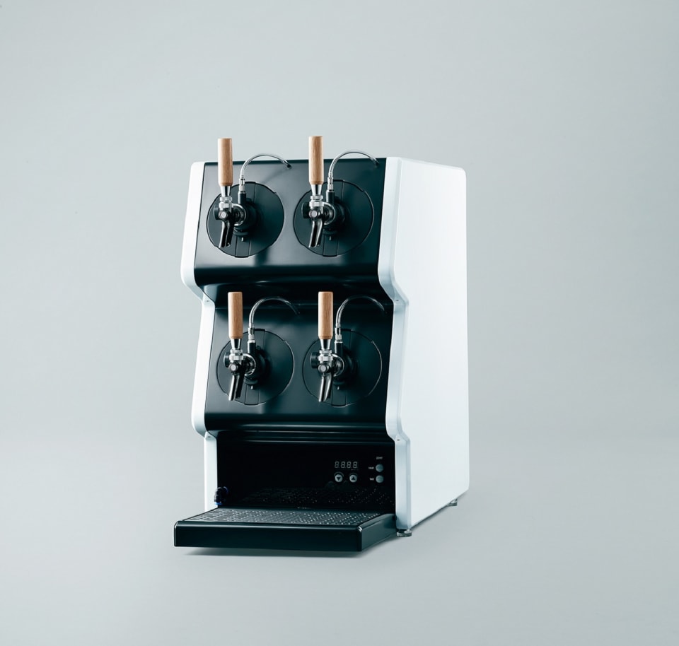 キリンの展開する「Tap Marche(タップ・マルシェ)」は、飲食店向けに多品種少量のビールを提供するサービスです。通常業務用のビール樽は小さいものでも7Lのサイズがあります。一方、タップ・マルシェは3Lの容器で2種類か4種類のビールを届けるというサービスです。
