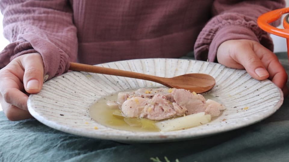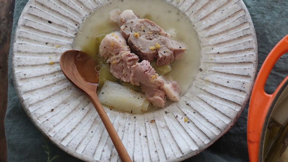 スープが美味しい季節。体を温めてくれるスープはこの季節に嬉しい一皿。ホロホロに煮込んだ豚肉と甘いネギ・そして生姜パワーで体を温めましょう。
