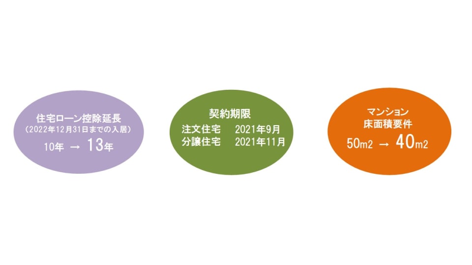 2019年の消費税増税の影響により、住宅の買い控えを避けるために、住宅ローン控除の期間を13年間に延長されました。この措置は本来2020年末までが入居期限となっていましたが、新型コロナウィルス感染拡大の特例措置として、2021年12月末まで入居期限が延長されていました。