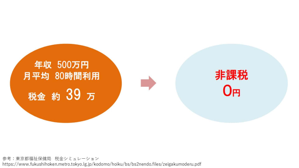 東京都福祉保健局のHPに記載されているシミュレーションで、利用者の年収が500万円だと仮定すると、年間約39万円の税金を納めなければいけませんでした。
