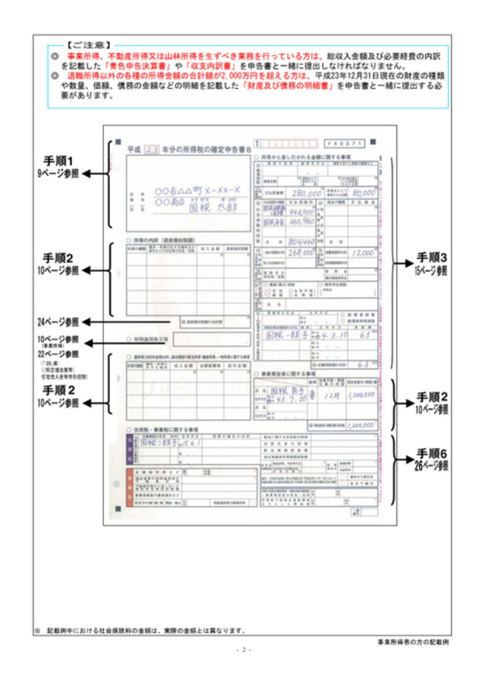 基本的な計算の方法は同じで、確定申告書Bはすべての申告に使える汎用的な様式です。ここでは確定申告書Bを使った事業所得についての手順をお伝えします。