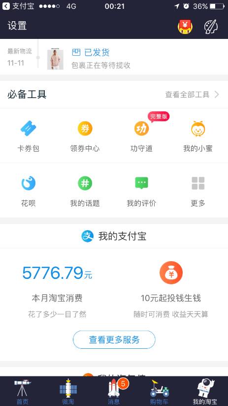 6000元使った友人の明細。左下に青字で今月の消費「5776.79元(≒10万円)」の記録が