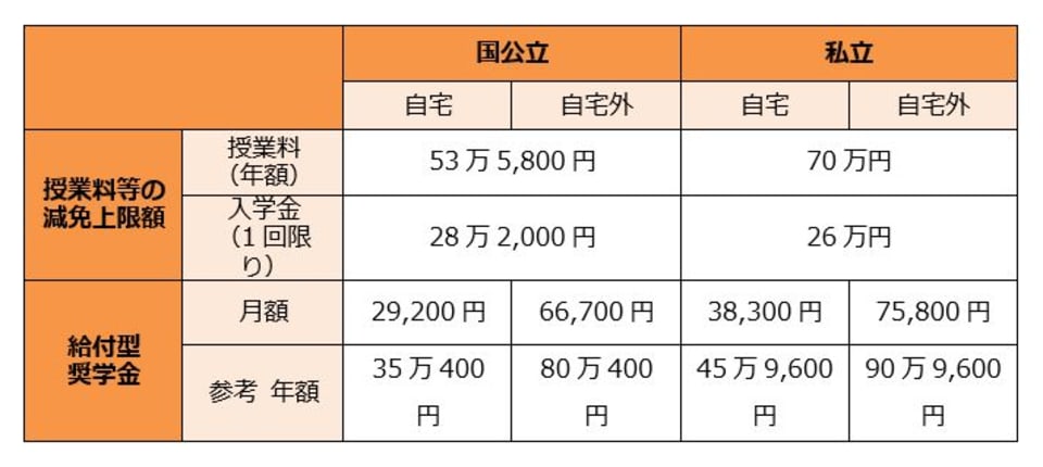 表1:住民税非課税世帯の学生が昼間大学に通う場合 ( 3 / 5 )
