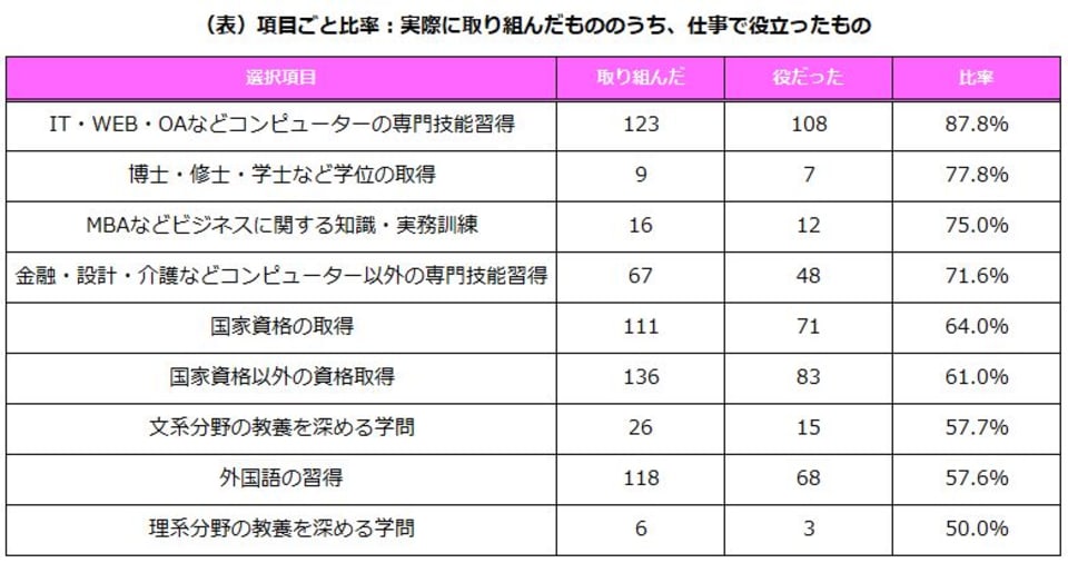 実際に取り組んだもののうち、仕事で役立ったもの ( 1 / 5 )