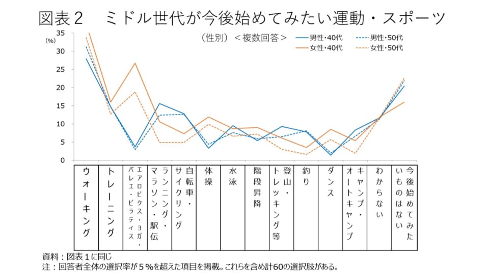 ミドル世代が始めてみたい運動・スポーツの一番人気はウォーキング