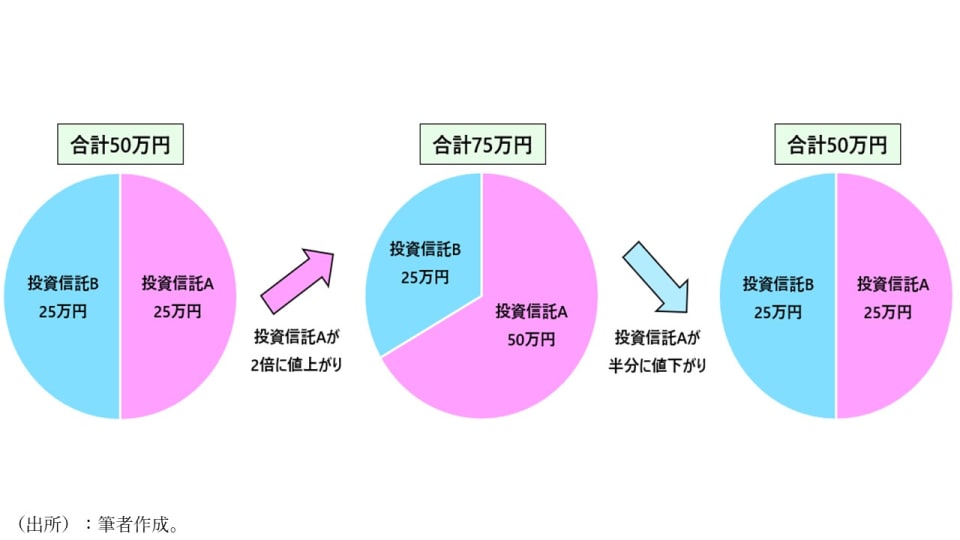 半年後は含み益が25万円発生し、資産総額は50万円から75万円に増加 ( 1 / 4 )