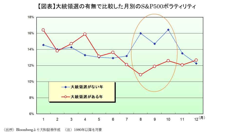 大統領選の有無で比較した月別のS&P500ボラティリティ ( 1 / 1 )