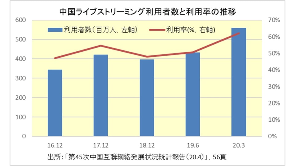 中国ライブストリーミング利用者数と利用率の推移 ( 1 / 2 )