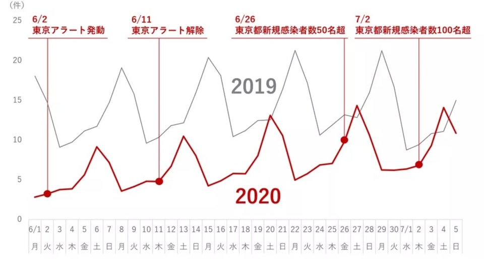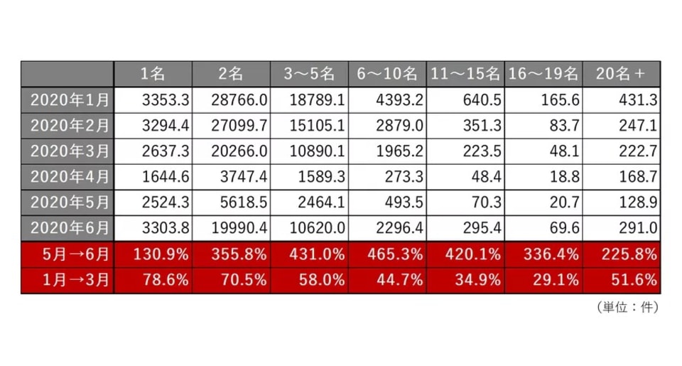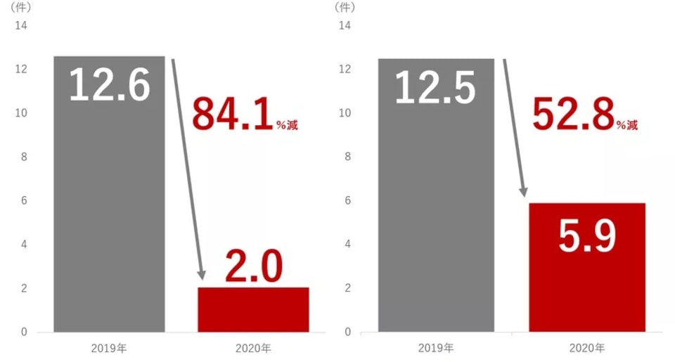 5~6月の1店舗あたりの平均来店件数(左:5月、右:6月)昨年比較 ( 1 / 10 )