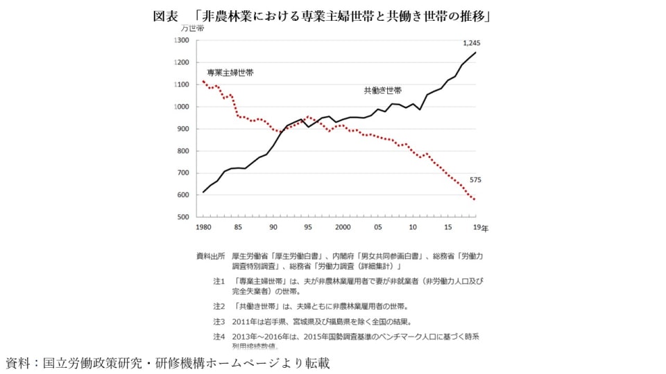 図表 「非農林業における専業主婦世帯と共働き世帯の推移」 ( 1 / 1 )