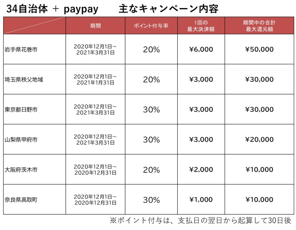 34自治体+paypay 主なキャンペーン内容 ( 1 / 5 )