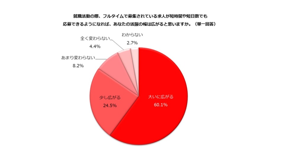 就職活動の際、フルタイムで募集されている求人が短時間や短日数でも応募できるようになれば、あなたの活躍の幅は広がると思いますか。(単一回答) ( 3 / 3 )