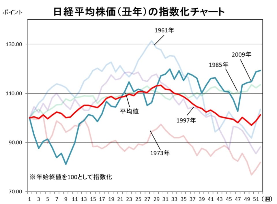 日経平均株価(丑年)の指数化チャート ( 2 / 4 )