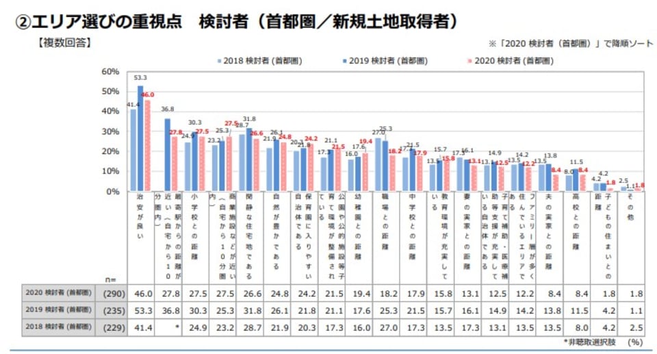 エリア選びの重視点 検討者(首都圏/新規土地取得者) ( 1 / 2 )