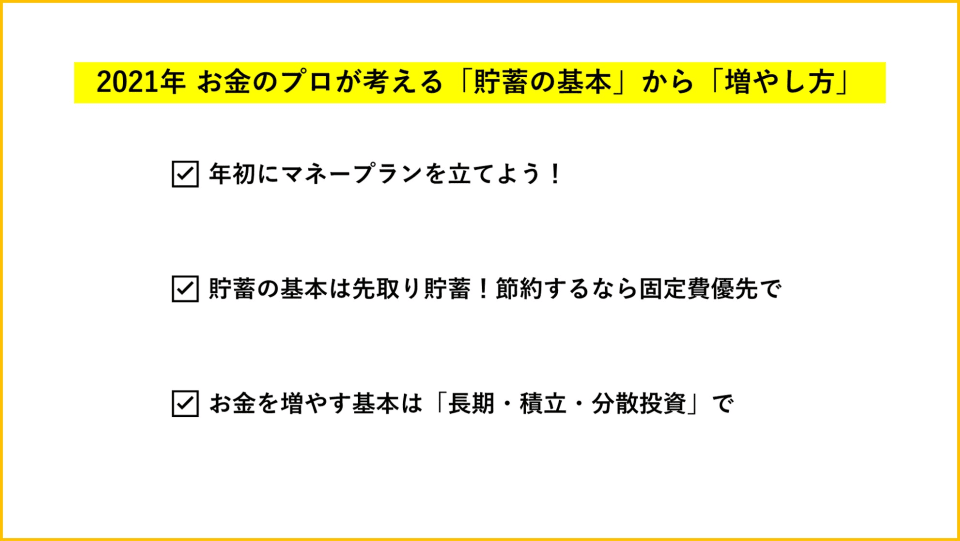 2021年 お金のプロが考える「貯蓄の基本」から「増やし方」 ( 1 / 1 )