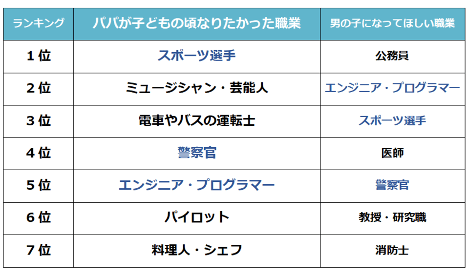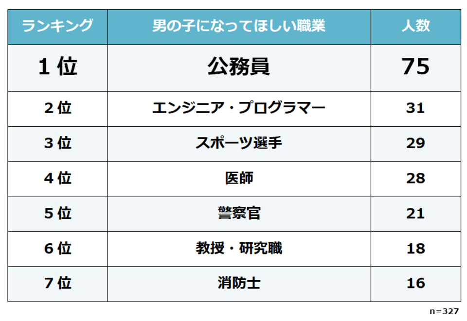 男女それぞれ1位は安定の職業