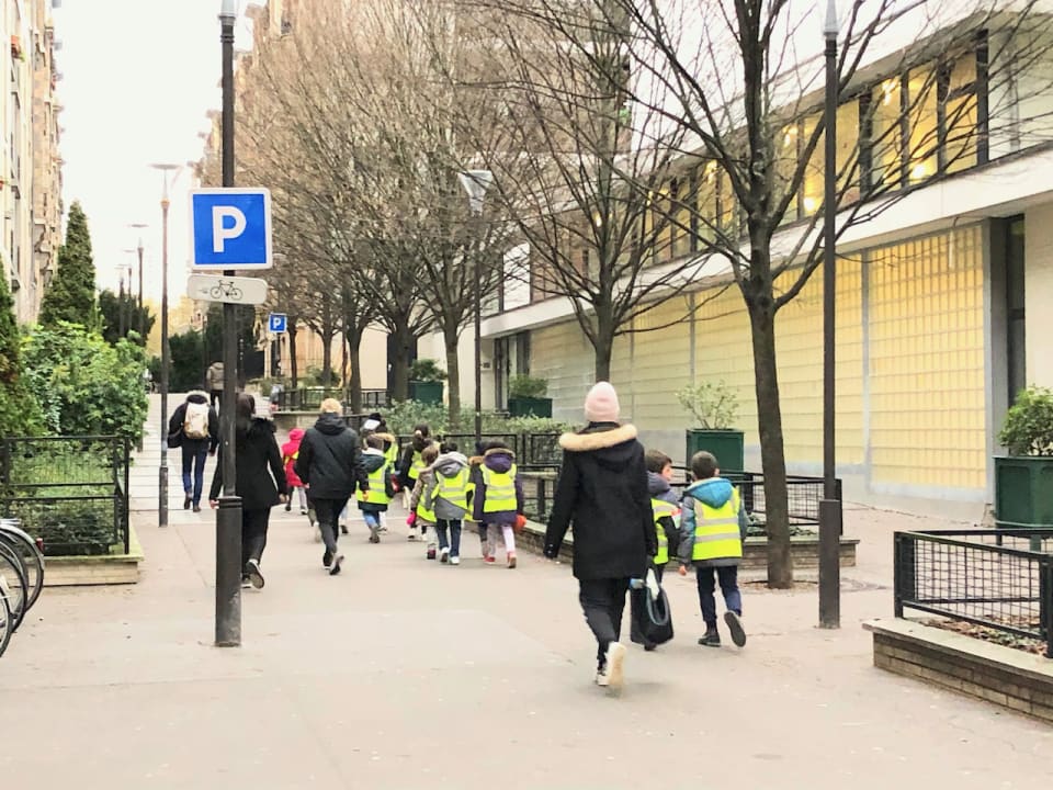 学校終了後、学童保育の引率者らと共に公園へ移動する児童たち ( 1 / 4 )