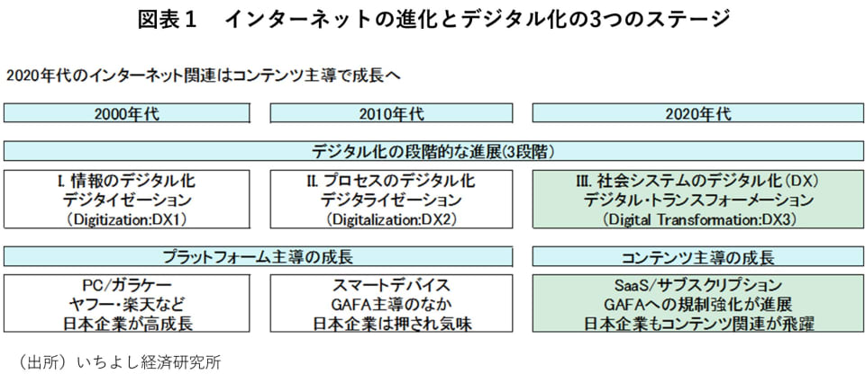 図表1 インターネットの進化とデジタル化の3つのステージ ( 1 / 2 )