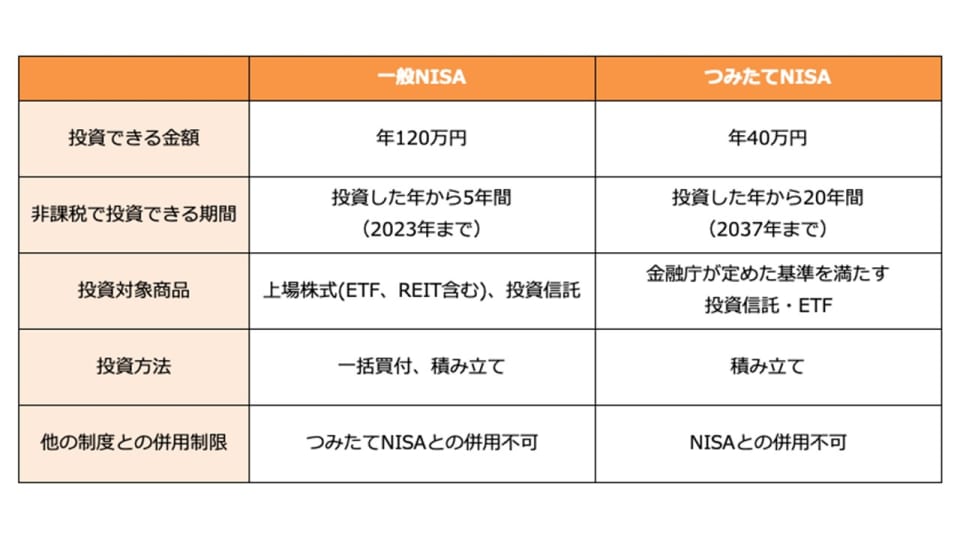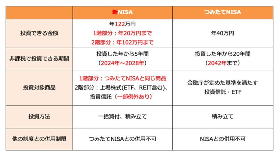 一般NISA・つみたてNISAの主な違い【現行の制度】 ( 1 / 5 )