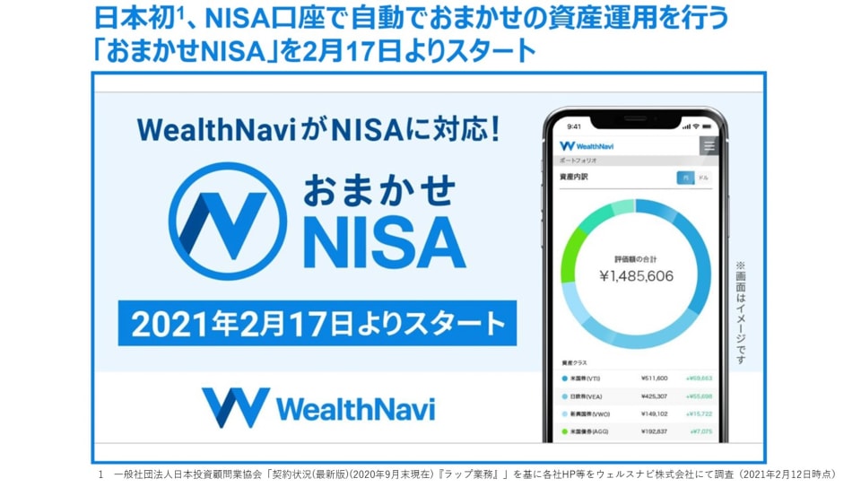MONEY PLUS>ビジネス>WealthNaviがついにNISAに対応!新サービス「おまかせNISA」とはのメリット、デメリットとは!?>Gallery