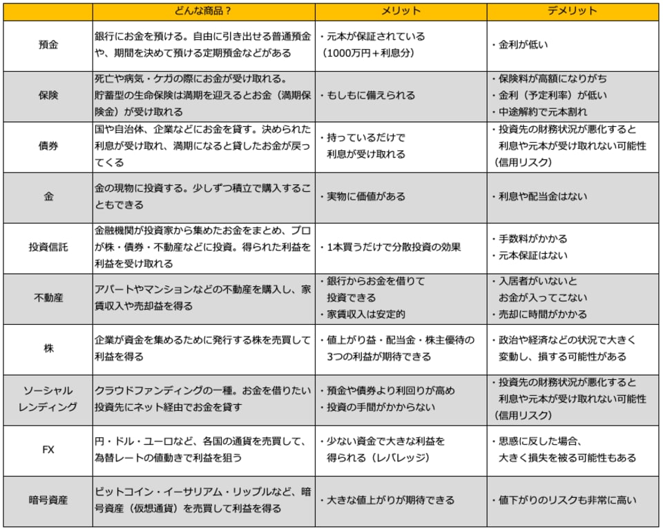 投資信託、株、保険、不動産…資産運用するなら何がある?特徴・メリット・デメリットが知りたい