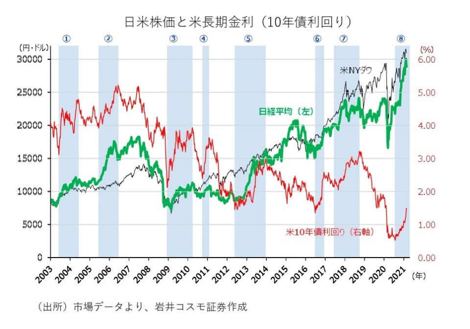 日米株価と米長期金利(10年債利回り) ( 1 / 3 )