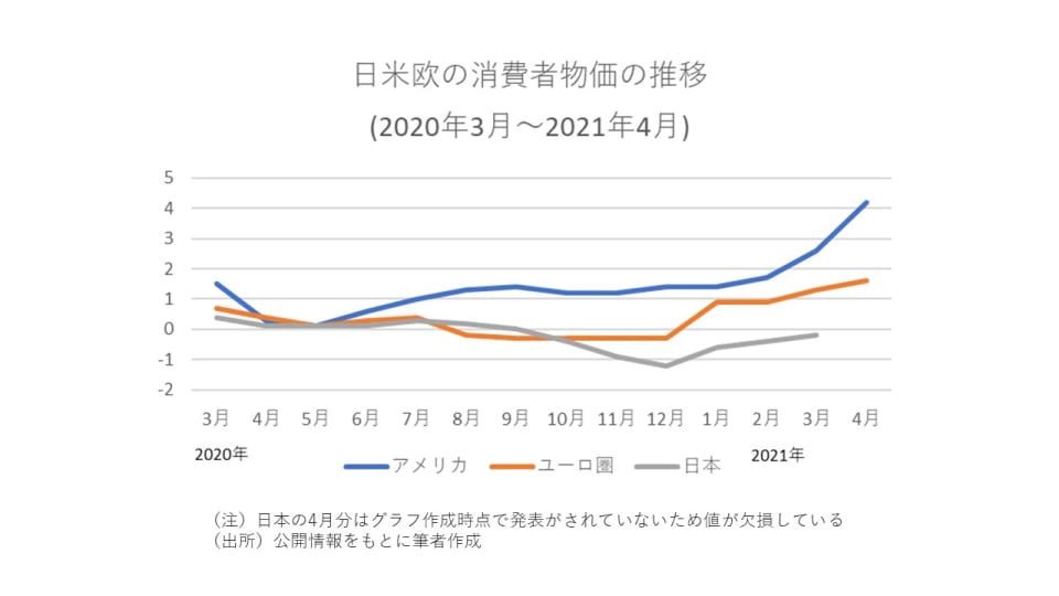 日米欧の消費者物価の推移 ( 1 / 2 )