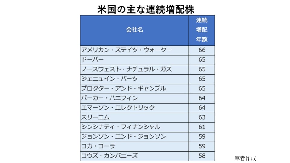 米国の主な連続増配株 ( 2 / 4 )