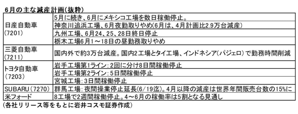 大手自動車メーカーも減産予定