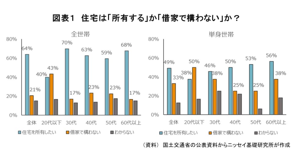 図表1 住宅は「所有する」か「借家で構わない」か? ( 1 / 4 )