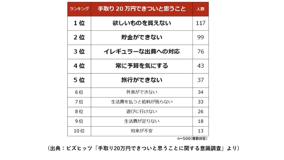 手取り20万円の暮らし「〇〇するのがキツイ」ランキング1位は?理想の手取りは?